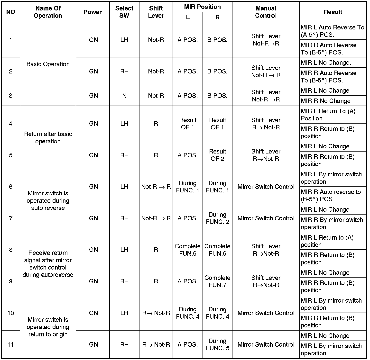 (1) When the each position switch is pressed at the ON state of the IGN2, the mirror shall be positioned according to the memorized value.