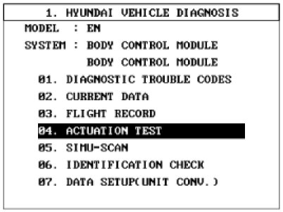 4. If you will check BCM data operation forcefully, select "Actuation test".