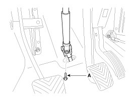 5. Loosen the bolt (A) and then disconnect the universal joint assembly from the pinion of the steering gear box.