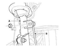 2. Disconnect the stabilizer link (B) with the front strut assembly (A) after loosening the nut.