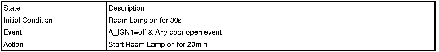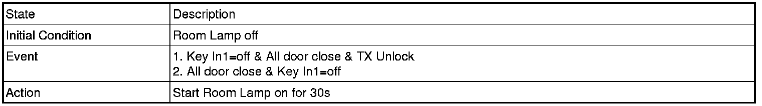 (2) In case of BAT. Connect -> disconnect, IGN1=off & Any door open , transit to Room Lamp on for 20 min Mode.