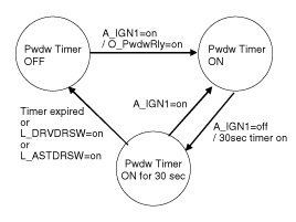 If A_IGN1=off, Extend Power Window Relay output for 30sec.