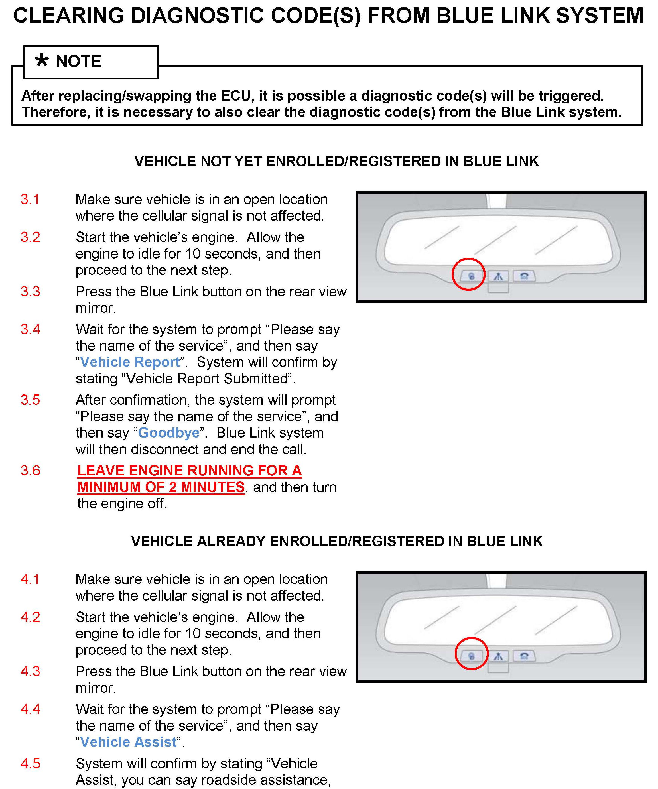 This bulletin describes the following procedure for vehicles equipped with Blue Link: