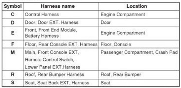 * Depending on the vehicle, it is necessary to check the harness name symbol on the harness layouts for detailed symbol.
