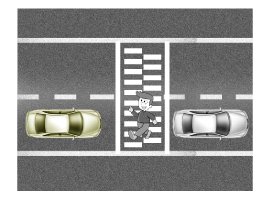2) A vehicle offset to one side