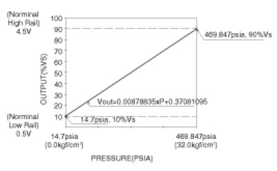 Voltage= 0.00878835 * Pressure + 0.5 [PSIA]
