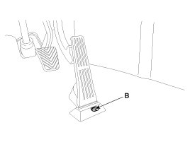 3. Remove the installation bolt (B) and nuts (C), and the remove the accelerator pedal module.