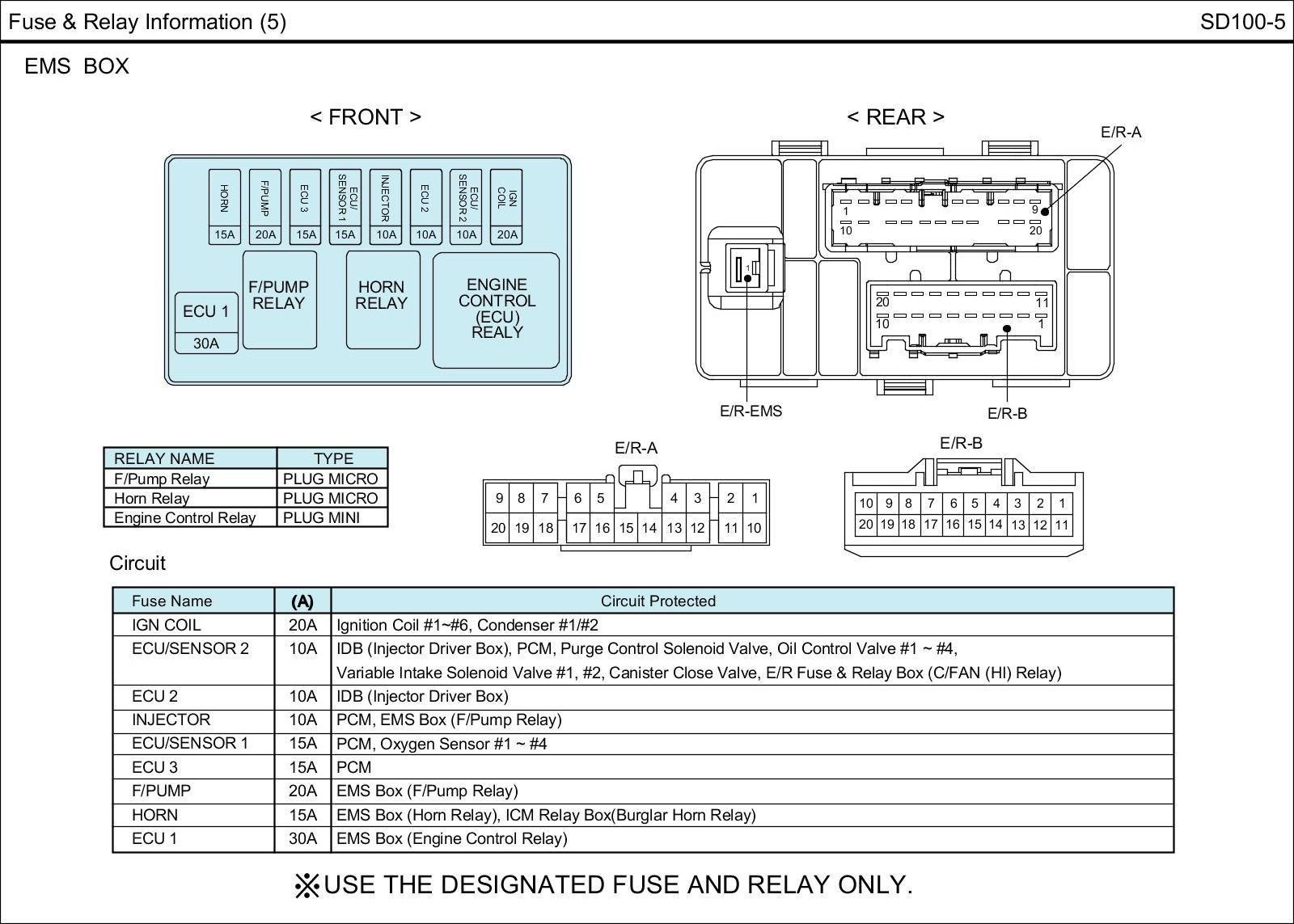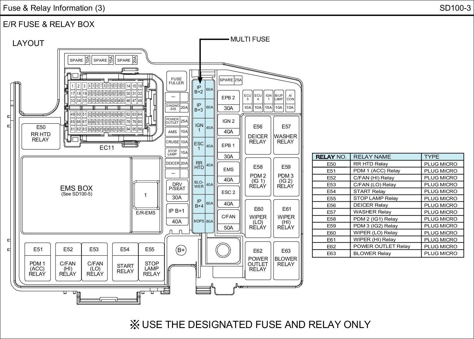 E/R Fuse & Relay Box Circuit Details: