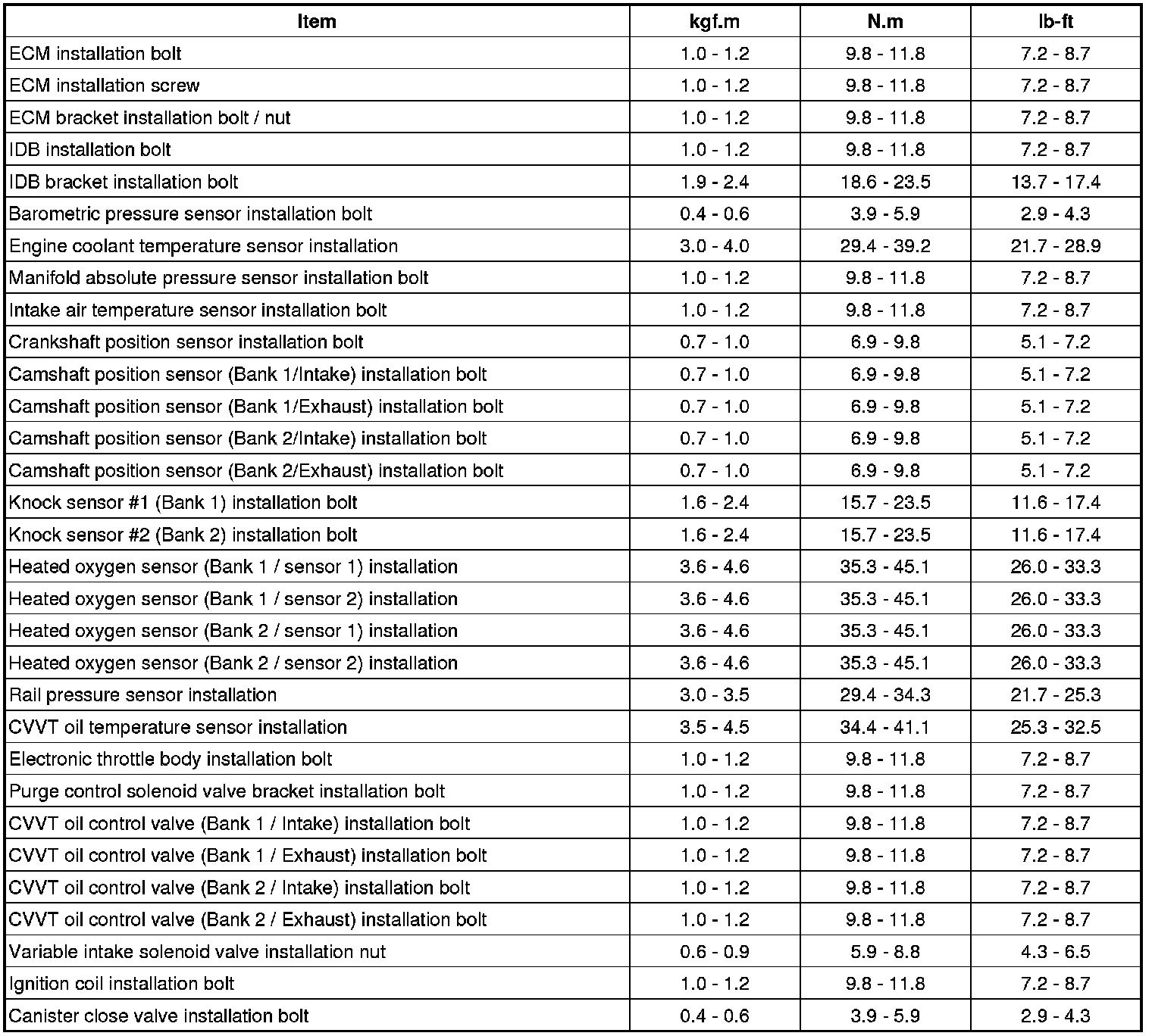 Tightening Torques