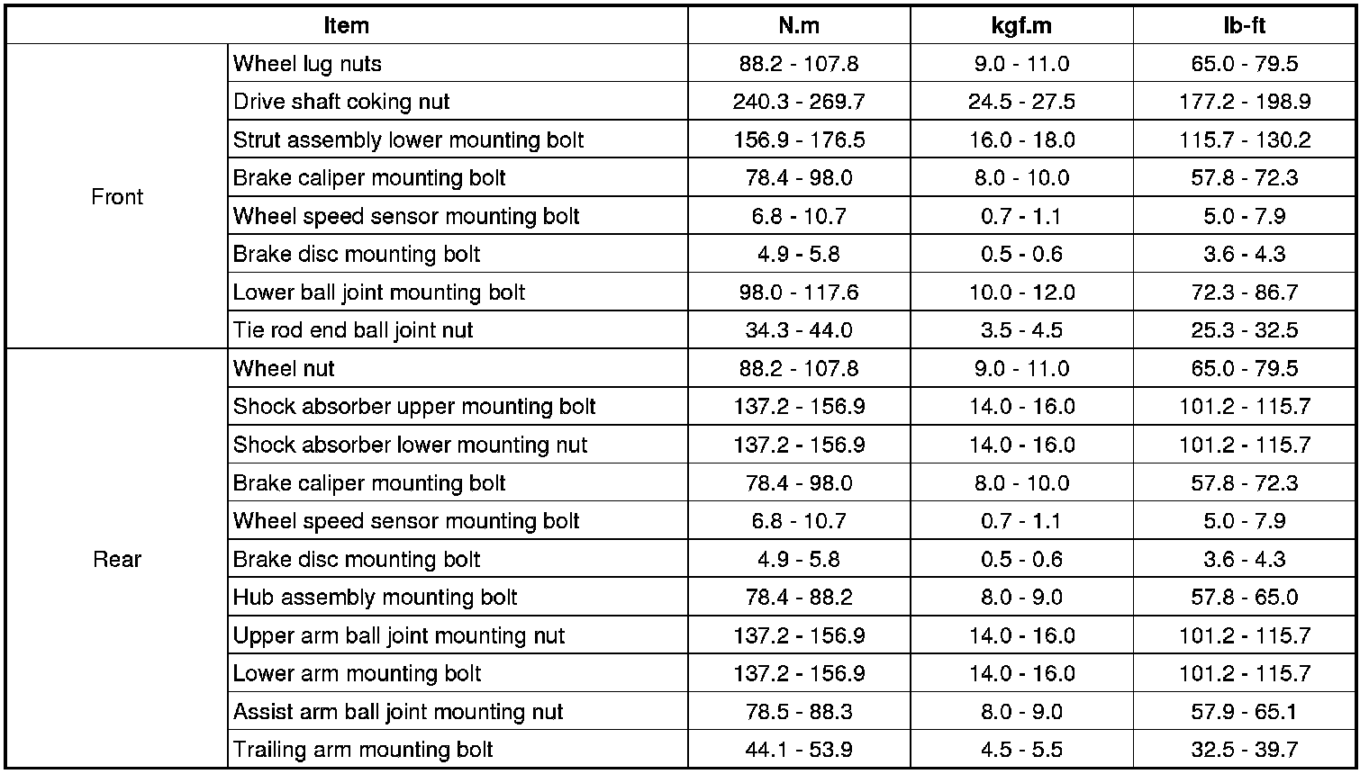 Tightening Torque