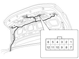 1. Check for continuity between the Trunk lid open switch terminals.