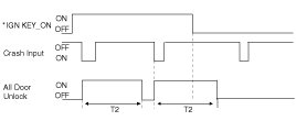 2. After L_CRASH INPUT signal starts to judge ON/OFF and IGN_KEY_ON states , if L_CRASH INPUT is ON then ALL DOOR UNLOCK is output for T2(5s) (CRASH UNLOCK OUTPUT)