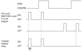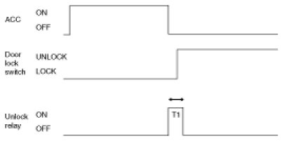 2. LOCK signal is output 3 times as Max if either one DOOR is UNLOCK after LOCK signal output in (2).(1s cycle) But, DOOR, which is LOCK from UNLOCK state during 3-time output, is ignored.