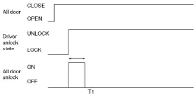 1. ALL DOOR UNLOCK signal is output at IGN KEY IN->OUT. But, UNLOCK state that is ALL DOOR to UNLOCK does not output.