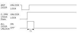 1. In Lock states of ANY DOOR (C_DRV UnlockState || C_AST UnlockState || C_RLUnlockState || C_RRUnlockState), if C_DRV UnlockState is LOCK -> UNLOCK, ALL DOOR UNLOCK is output one time for T1.
