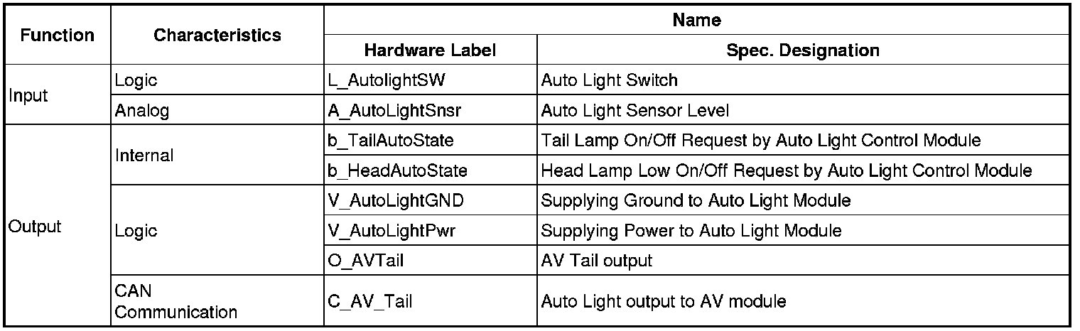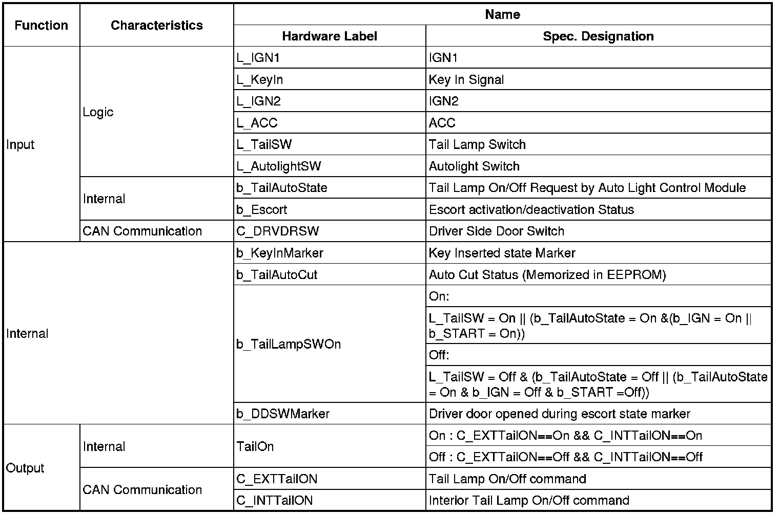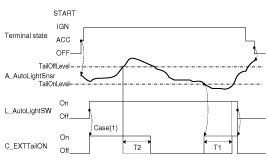 Only in the terminal states of IGN and START, the Auto Light control functions of Tail lamp and head Lamp Low outputs can be active.