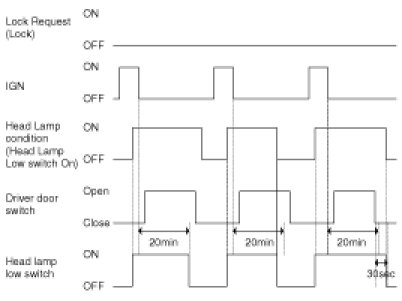 After user generates the call of head lamp low light(Head Lamp Low switch On), if switch off ignition(IGN Off and START Off), and then keep Head Lamp Low Output On (Head Lamp Low ON)state during 20min.