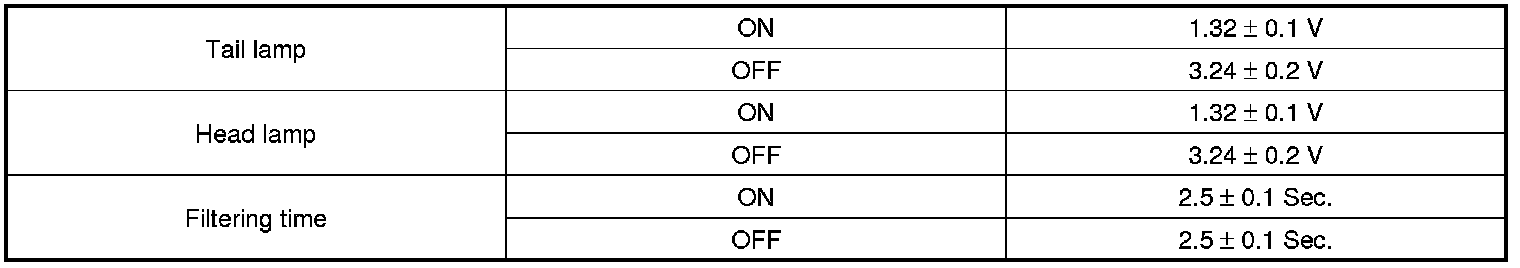 3. In ACC terminal state, Tail Lamp and Head Lamp Low filtering times are not used; AV Tail Out filtering time is used even in ACC terminal state.