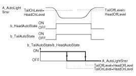 1. During above ON/Off Filtering times, if a detected sensor value doesn't satisfy the ON/ Off condition, filtering time counter is cancelled. When Tail lamp Off and Headlamp Off conditions are satisfied at the same time, Head Lamp Low and Tail Lamp are turned off simultaneous.