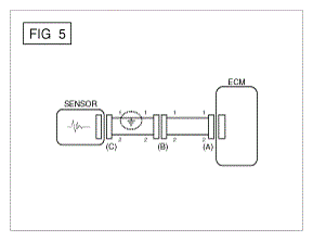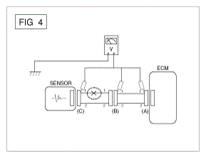 - With each connector still connected, measure the voltage between the chassis ground and terminal 1 of each connectors (A), (B) and (C) as shown in [Fig 4].