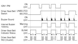 (4) If IPM detects IGN ON signal regardless of Seat Belt status, DRIVER SEAT BELT IND should be triggered for defined timing for IND check but Buzzer SOUND should be played only in case of unfastened Seat Belt.
