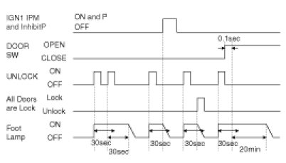 (2) After the 1) Condition, if (Crash Unlock = Unlock) is again from IPM or any Unlock state switch change to Lock from Unlock, then activate (Assist Door Unlock Relay = ON) for 5 seconds again.