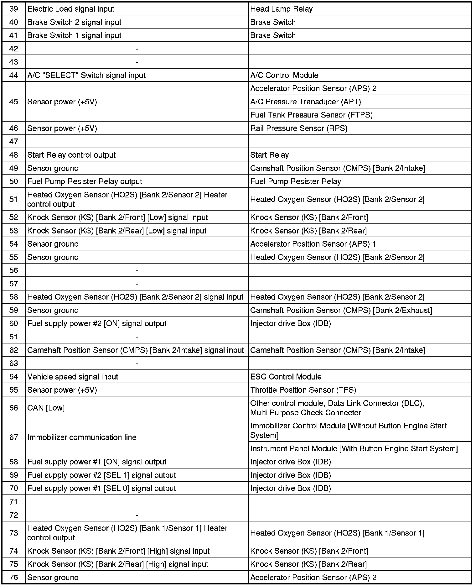 ECM Terminal And Input / Output signal