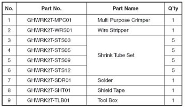 2. Use of in-line solder (GHWRK2T-SDR01) and Shrink tube set (GHWRK2T-STS03, 05, 09, 12)