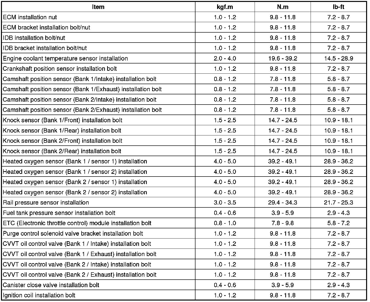 Home >> Hyundai >> 2012 >> Equus V8-5.0L >> Repair and Diagnosis >> Specifications >> Mechanical Specifications >> Powertrain Management >> System Specifications