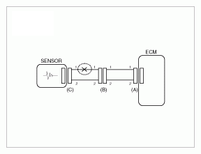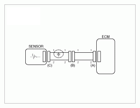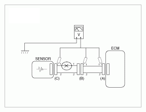 - With each connector still connected, measure the voltage between the chassis ground and terminal 1 of each connectors (A), (B) and (C) as shown in [Fig 4].