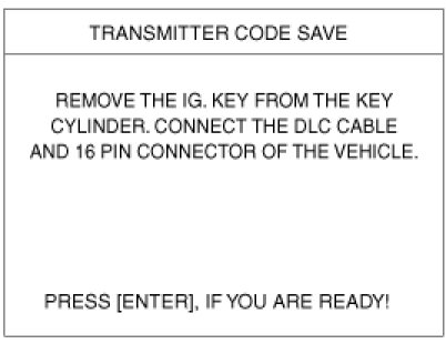4. After removing the ignition key from key cylinder, push "ENTER" key to proceed to the next mode for code saving. Follow steps 1 to 4 and then code saving is completed.