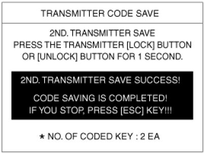 4. If the doors lock and unlock, the transmitter is O.K, but if the doors don't lock and unlock, register the transmitter code, then try to lock and unlock the doors.
