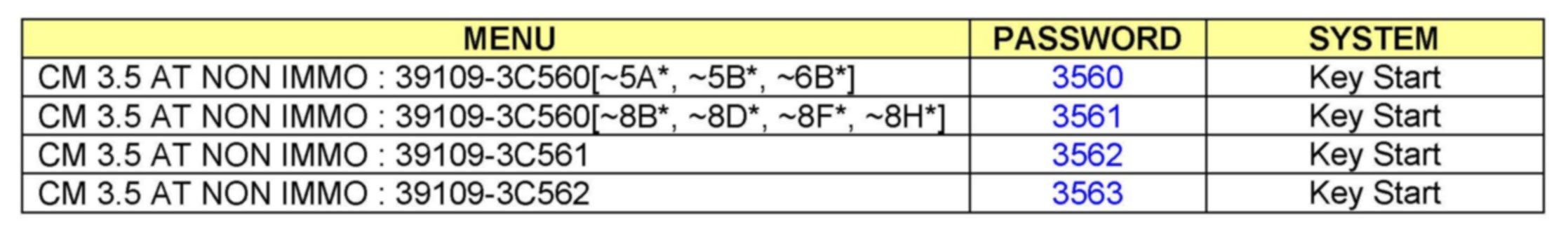^ It is critical to identify the correct ECM Part Number in the PASSWORD table or the ECM may be permanently damaged. It is recommended to remove ECM and read the part number from the label to confirm.