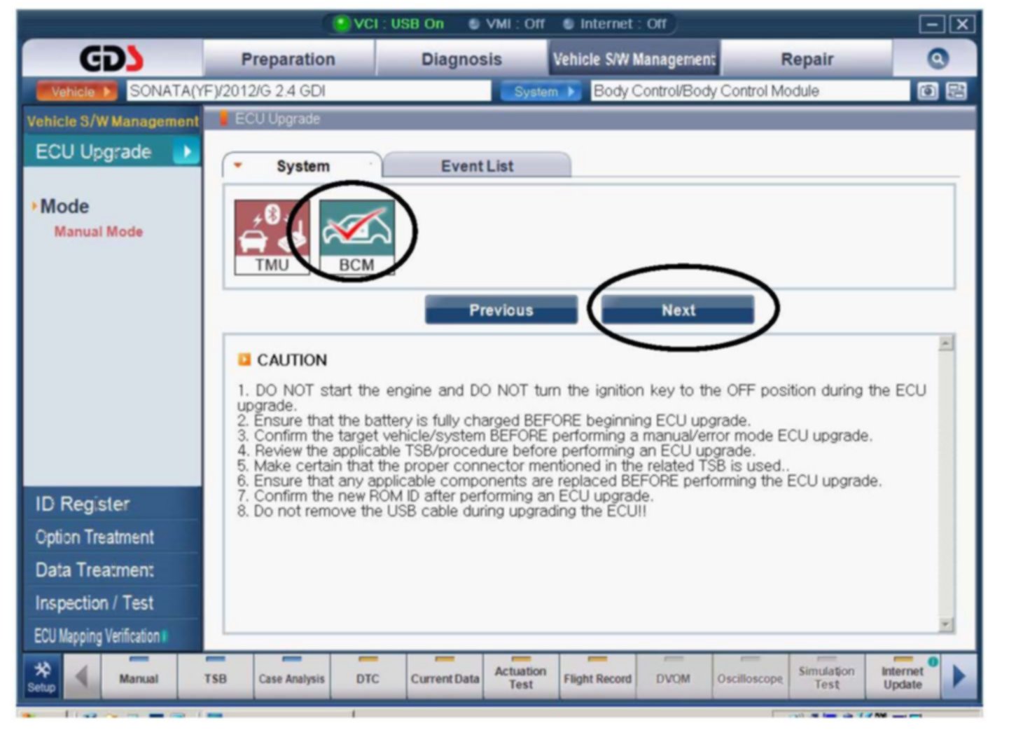 GDS MANUAL MODE BCM REPROGRAMMING PROCEDURE