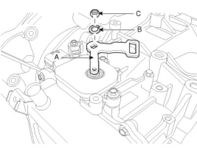 6. Remove the manual control lever (A) and the washer (B) after removing a nut (C).