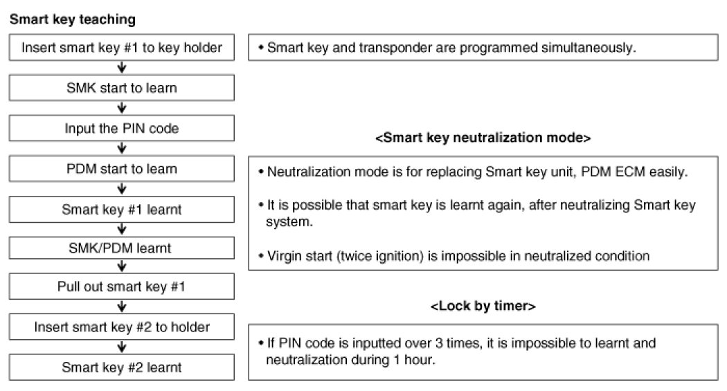 - PDM replacement: PDM is not learnt, SMK and SMART FOB are already learnt with same PIN code