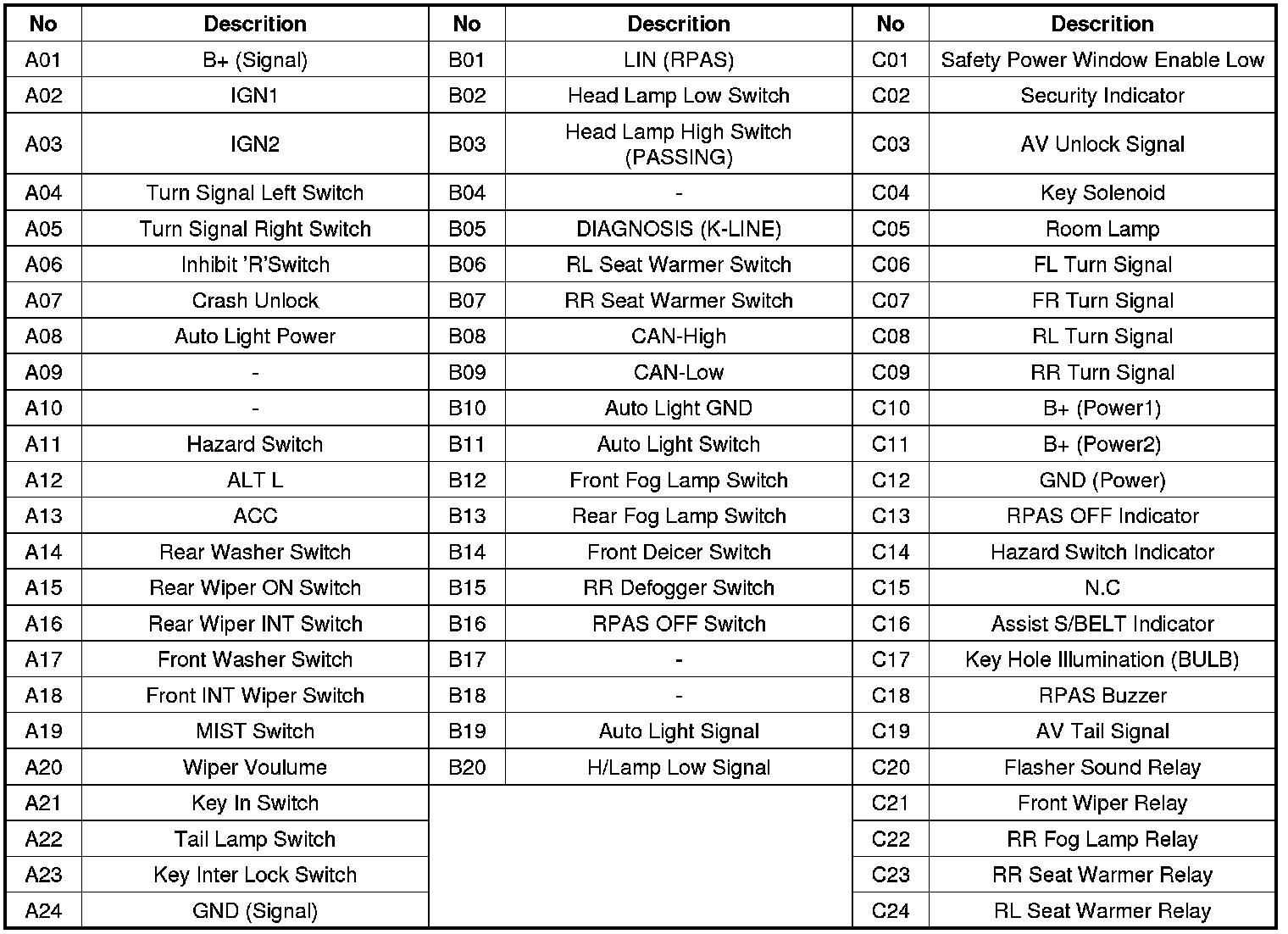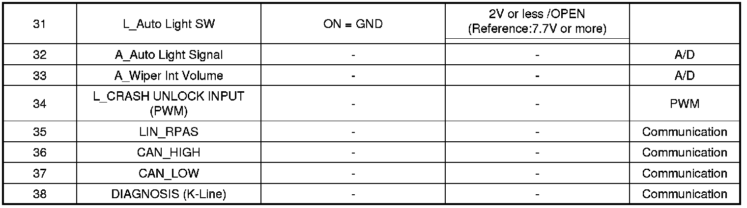 3. To consult the present input/out value of IPM, "Current DATA". It provides information of IPM input/output conditions of power supply, turn signal/brake lamp, headlamp, door locks, outside mirror, wiper, auto-light and transmitters etc.