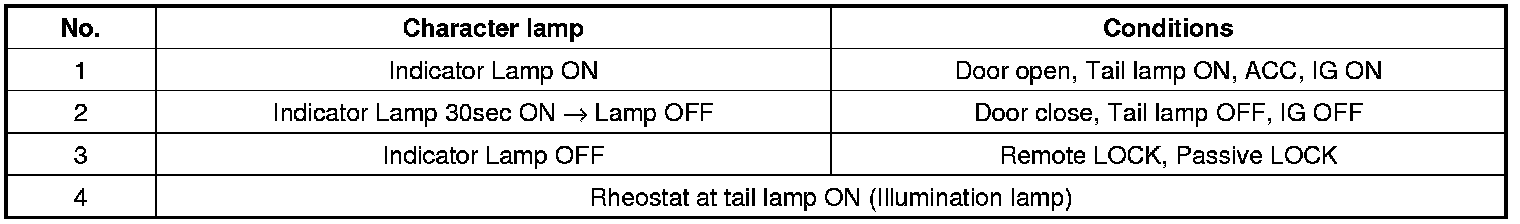 Indicator ON/OFF Condition According To Ignition Key's Position