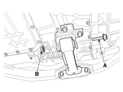 7. Loosen the bolt(A) & nut(B) and then remove the roll rod stopper.