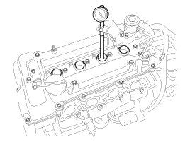 (5) If the cylinder compression in one or more cylinders is low, pour a small amount of engine oil into the cylinder through the spark plug hole and repeat step 1) through 3) for cylinders with low compression.