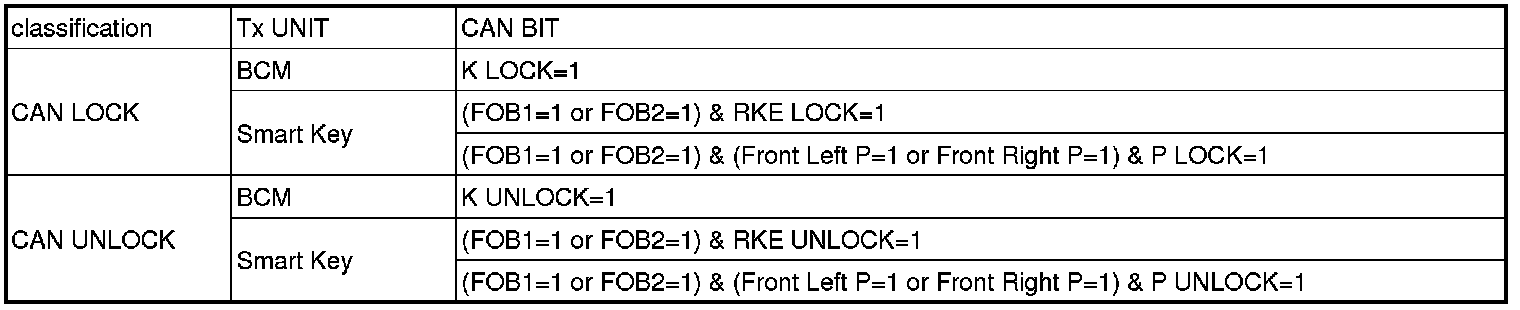 4. CAN LOCK/UNLOCK signal is same a below table.
