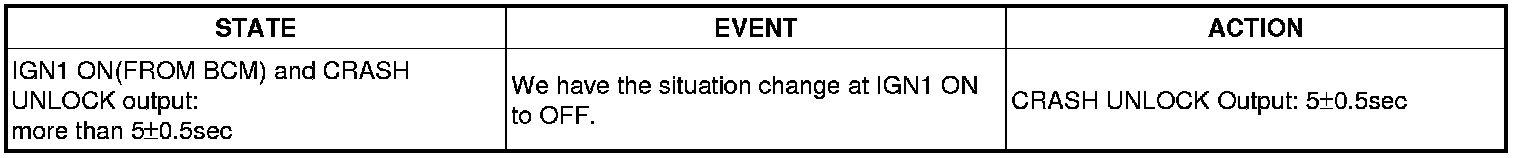 (4) CRASH UNLOCK's condition does not achieve AUTO DOOR LOCK. After this, when it's changing IGN OFF-> ON, it achieve AUTO DOOR LOCK function.