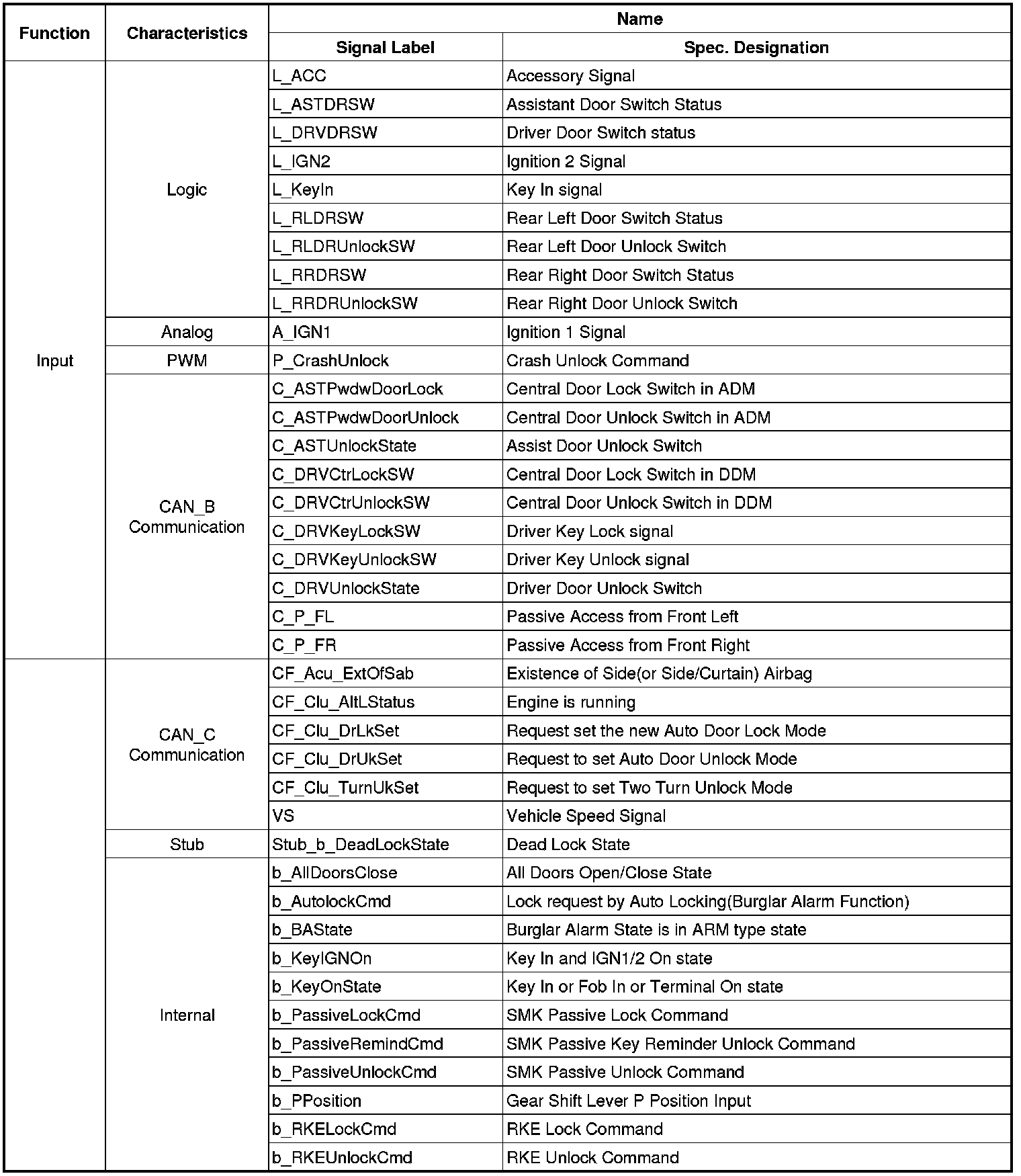 - Central Locking Unlocking by Driver Mechanical Key Control Function
