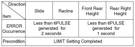 SEAT: 6PULSE is correctly input from ERROR causing motor position Sensor by operating MANUAL switch with in 2 seconds (SLIDE, RECLINE)/ 1 second(Front rear height, Rear right height).
