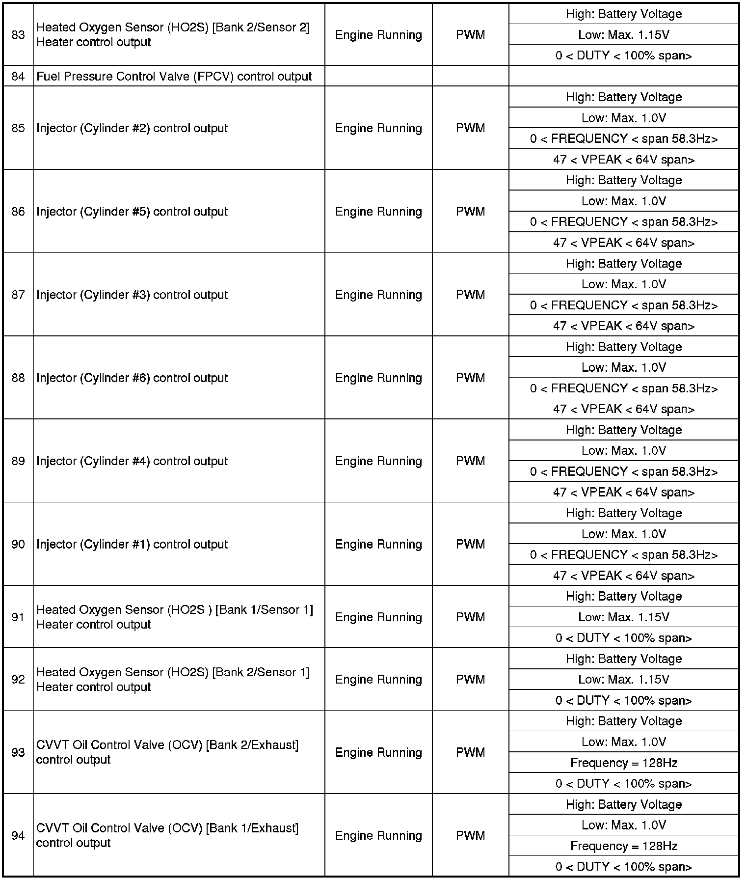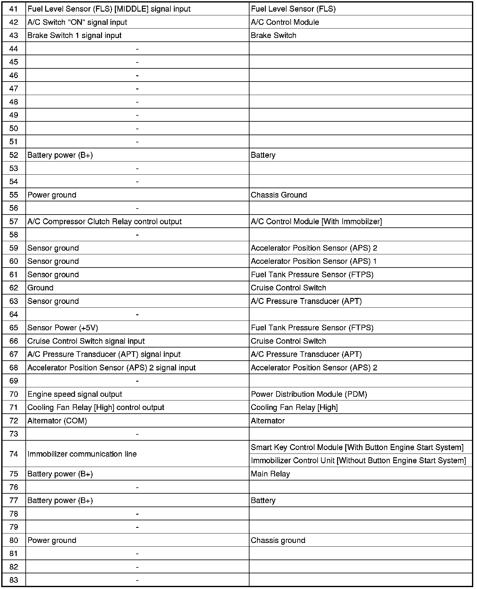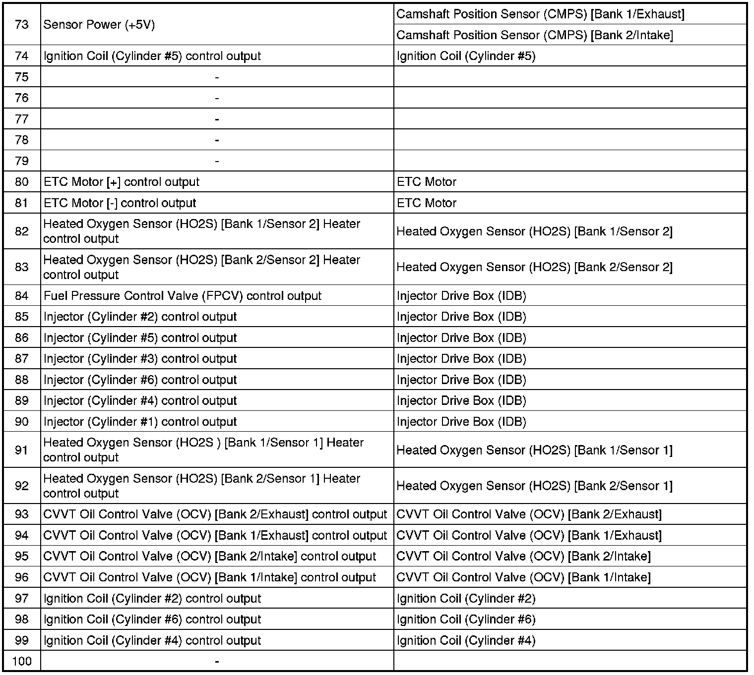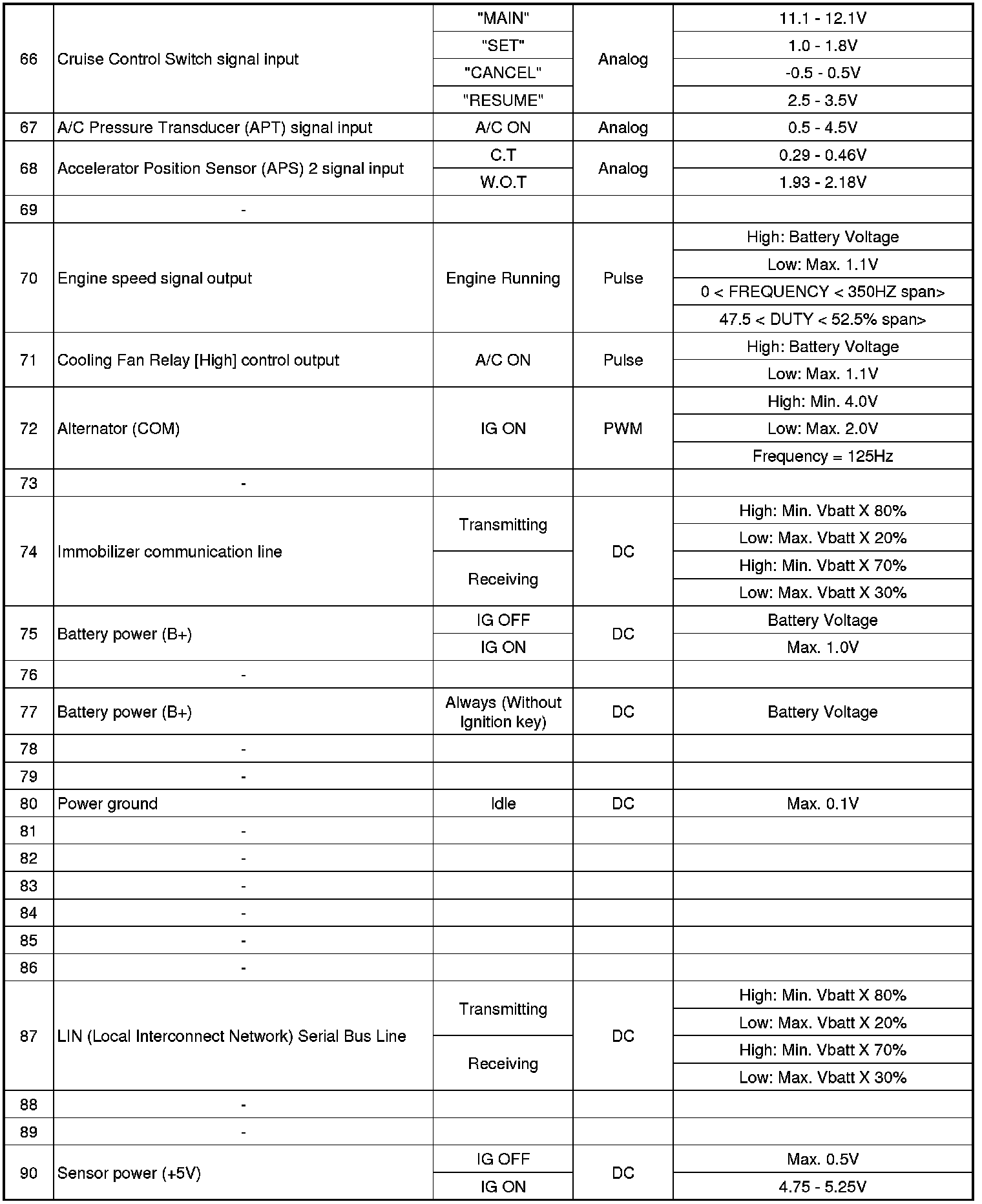 ECM Terminal Input/Output Signal