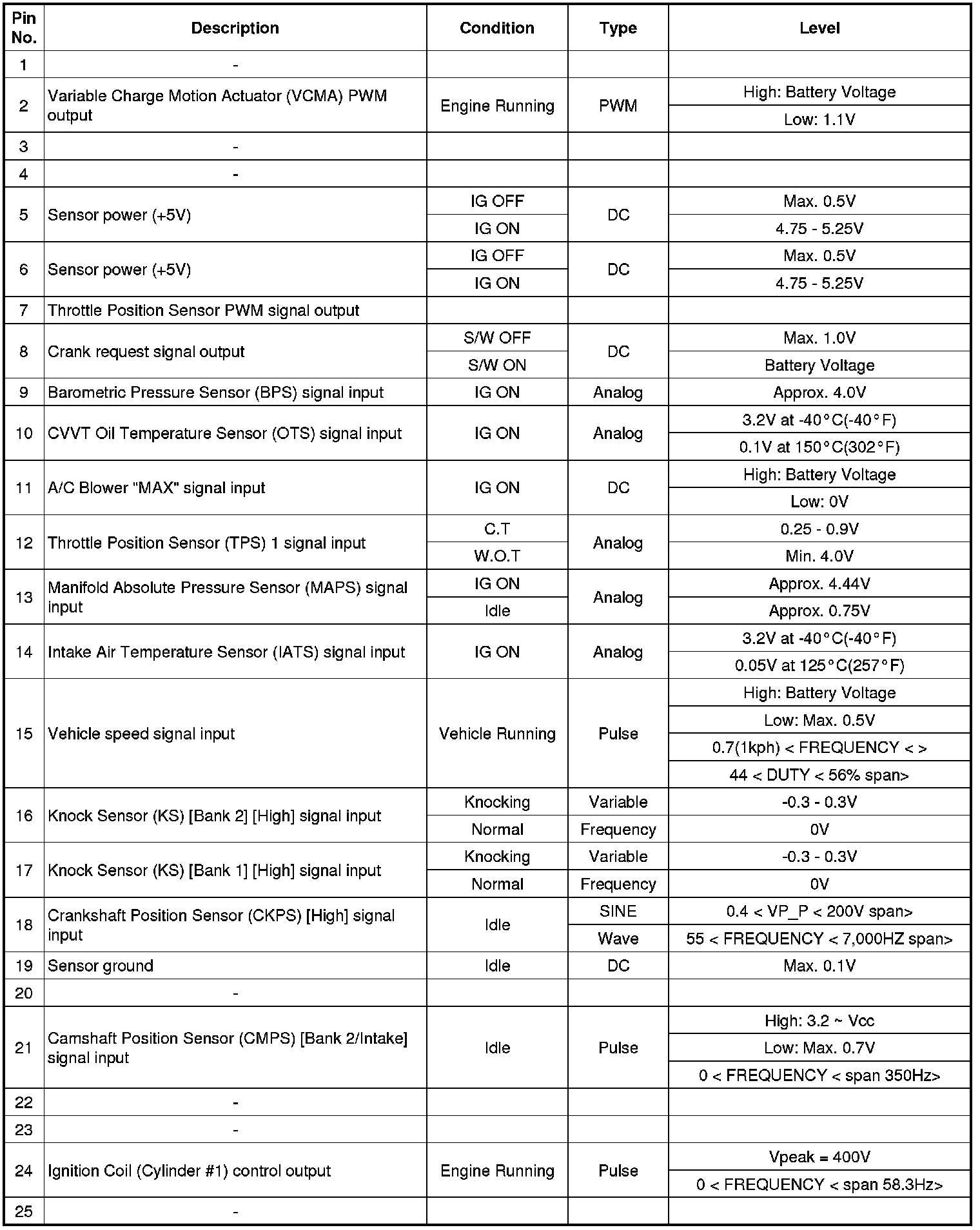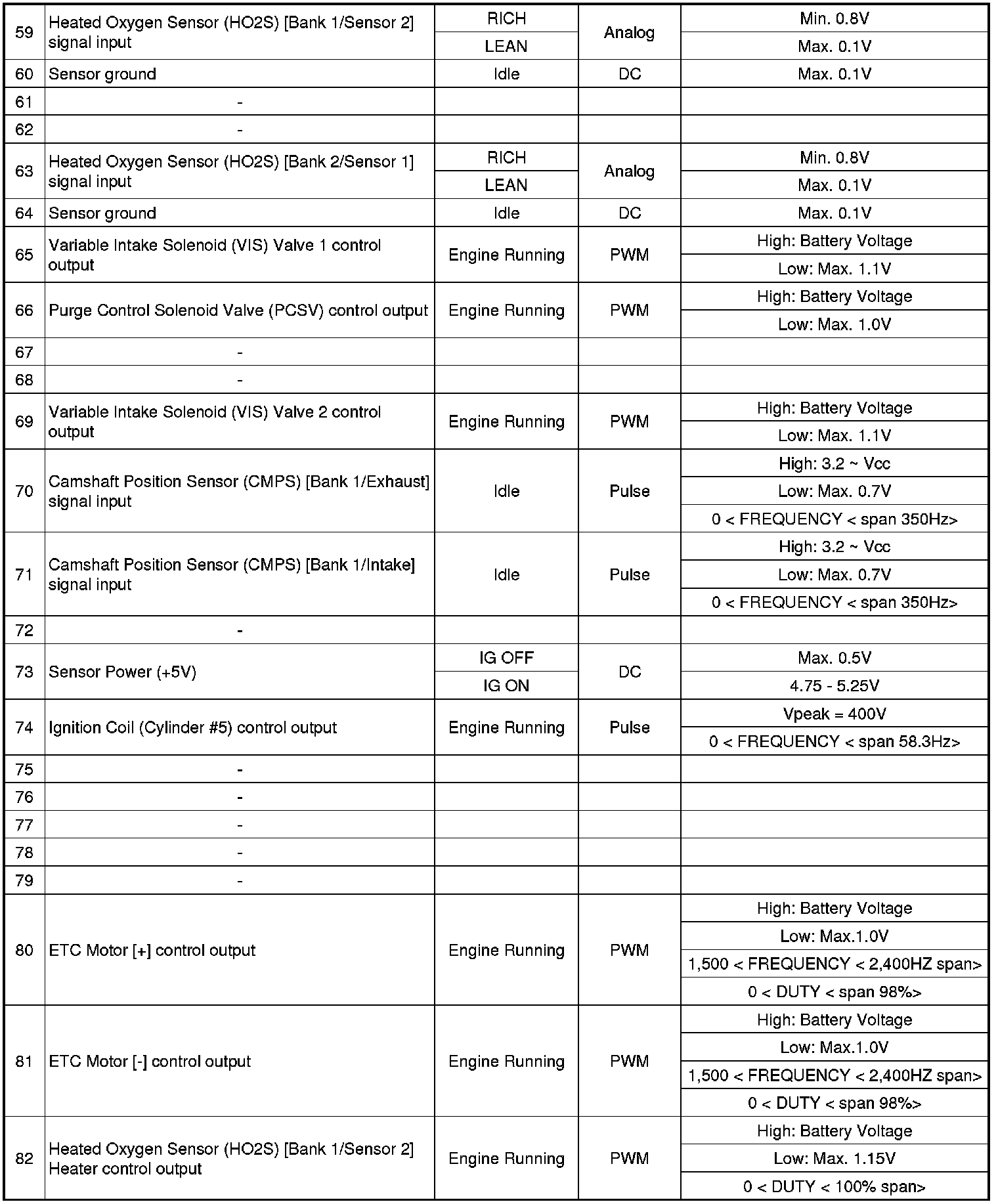 ECM Terminal And Input/Output signal