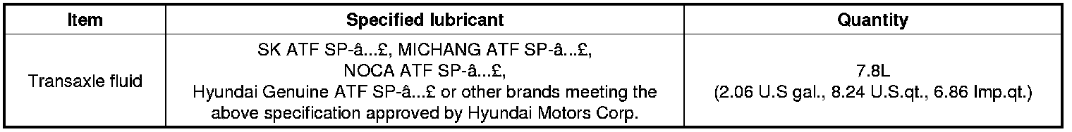 Home >> Hyundai >> 2013 >> Azera V6-3.3L >> Repair and Diagnosis >> Specifications >> Mechanical Specifications >> Automatic Transmission/Transaxle >> System Specifications
