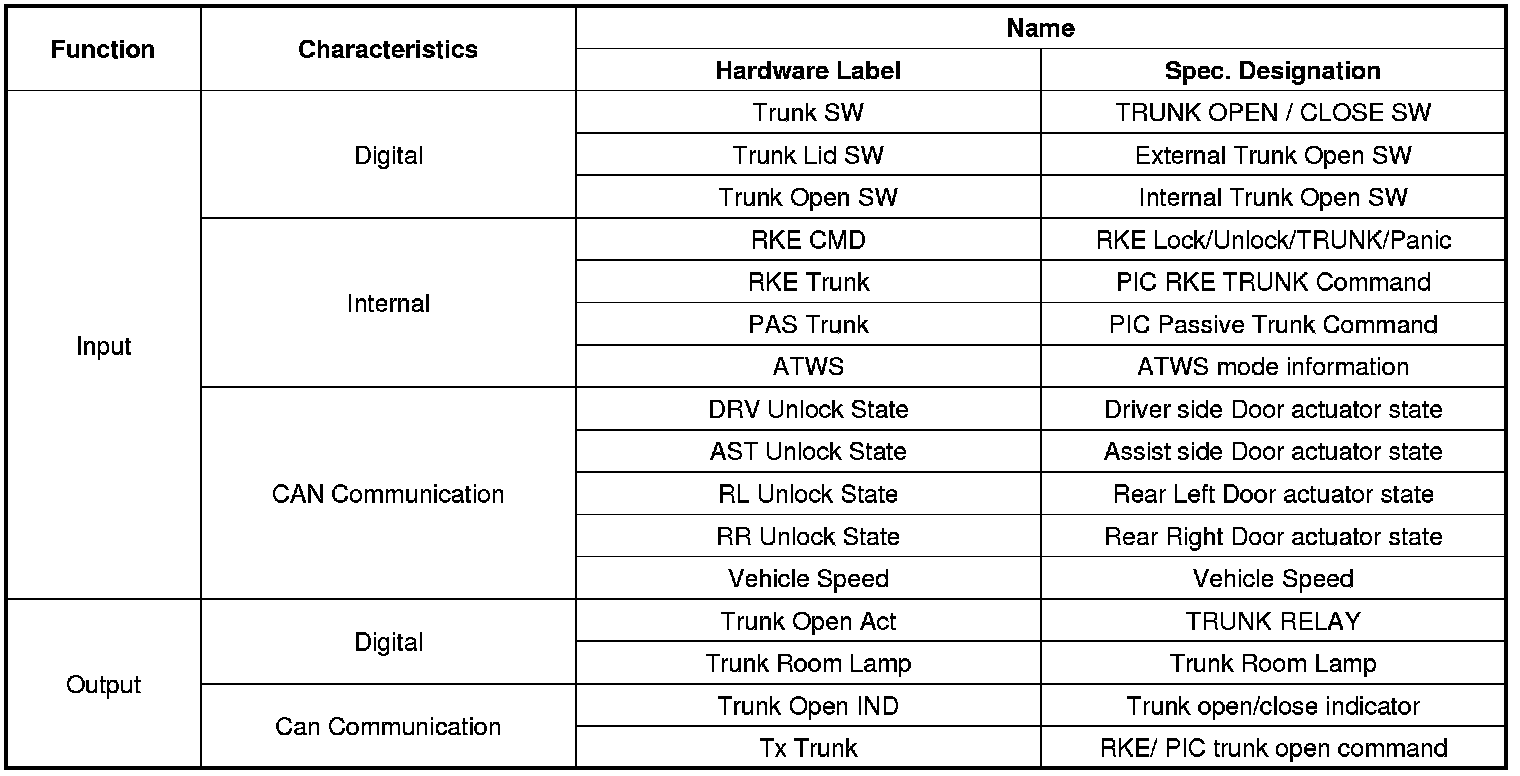 - Generate Trunk open command signal issued by Trunk Lid switch for PTL via CAN