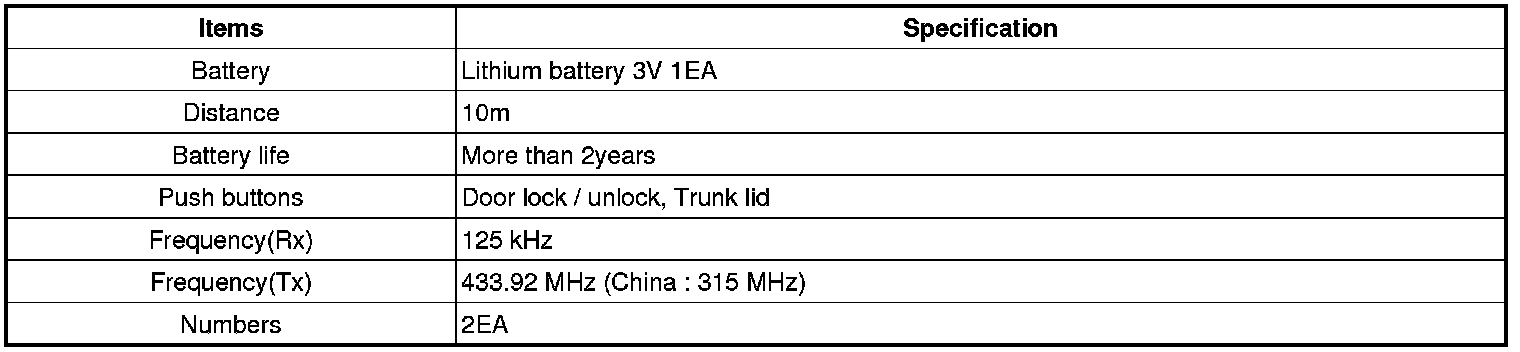 Keyless Starting System: Specifications