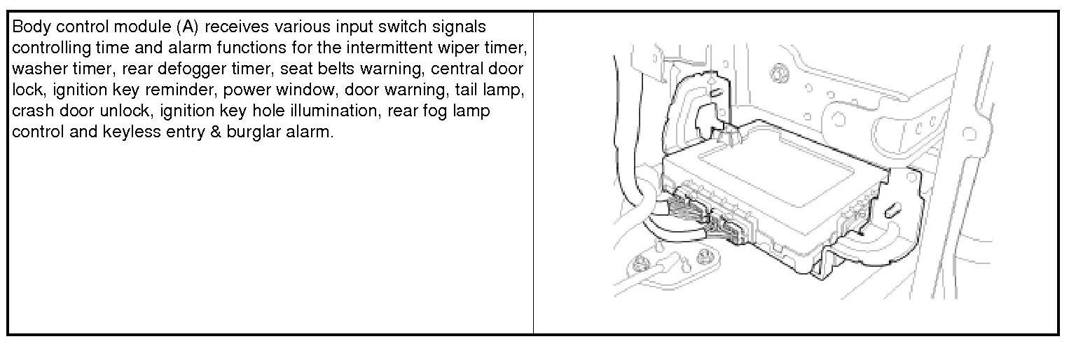 Home >> Hyundai >> 2013 >> Genesis Coupe V6-3.8L >> Repair and Diagnosis >> Powertrain Management >> Computers and Control Systems >> Relays and Modules - Computers and Control Systems >> Body Control Module >> Description and Operation